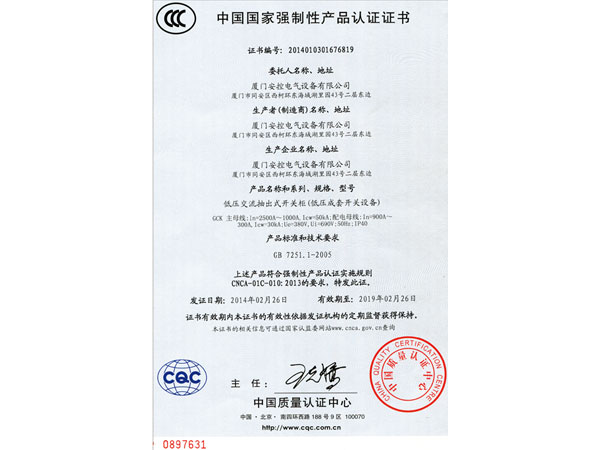 低压交流抽出式开关柜产品认证-CN