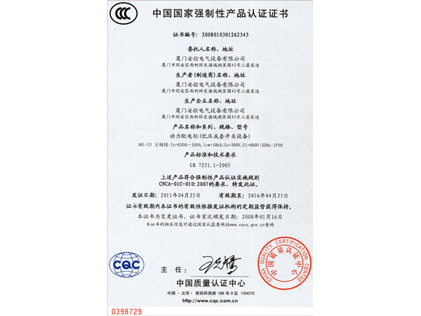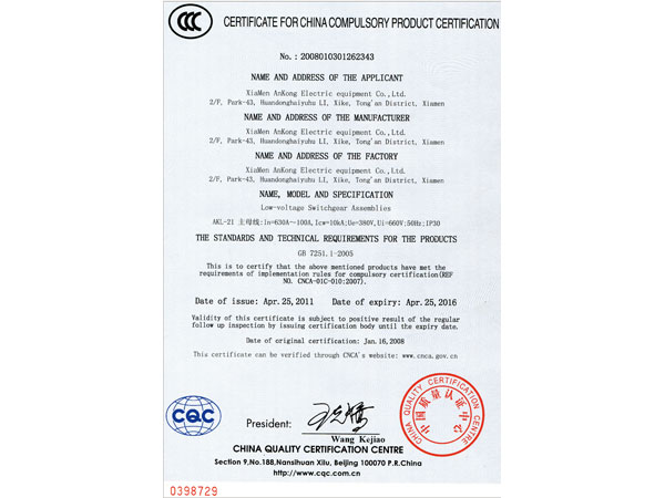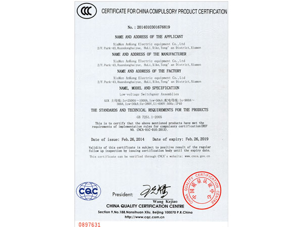 交流低压配电柜产品认证-CN